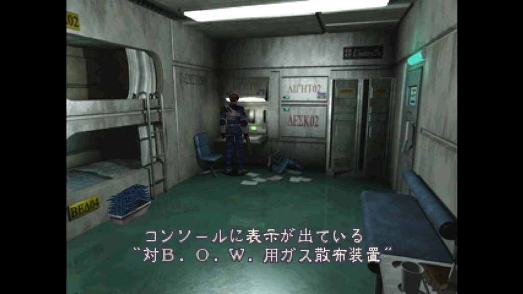 でさ、とある部屋に「対B.O.W.用ガス散布装置」ってのがあって、研究所に廊下に人間に無害な毒を散布してイビーを全滅させることができるんよね😳