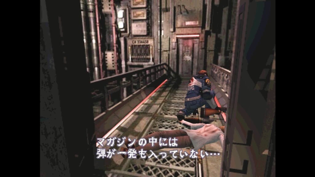 この部屋には2匹のリッカーが配置されてんだけど、面白いのがこいつらは基本的にこちらが走ったり銃を撃ったりしない限り襲ってこない。