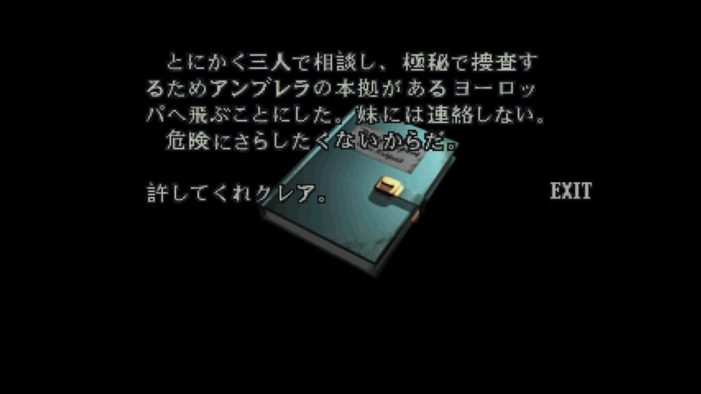クリスはアンブレラの本拠があるヨーロッパへ飛び立ってしまっていること。(ジルはまだラクーンシティに潜伏中)