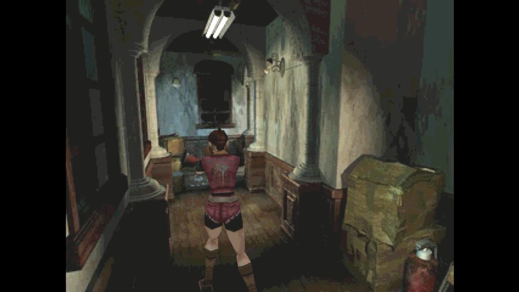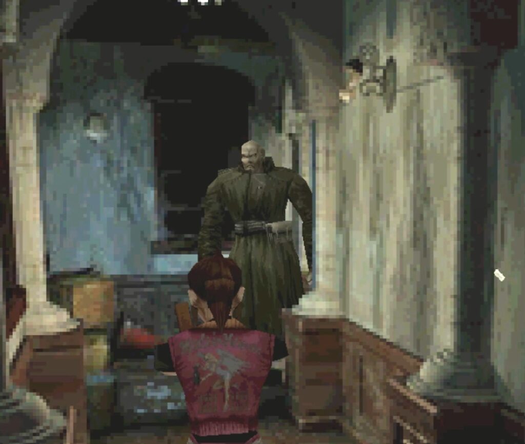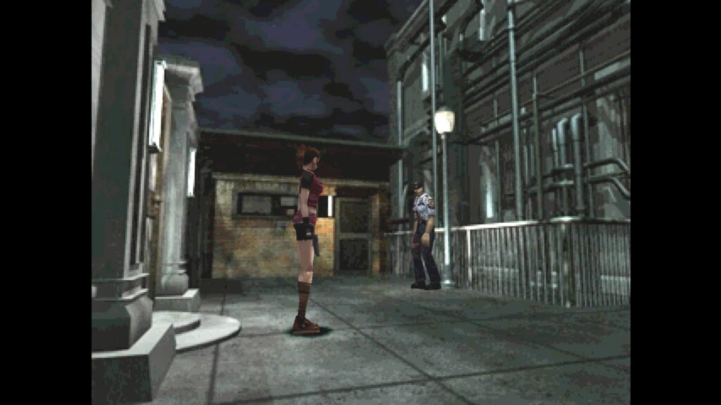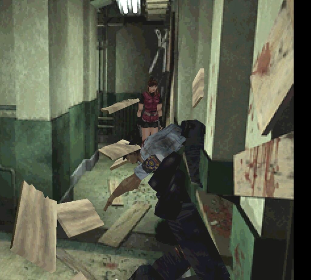 裏編はレオンとは逆側の場所からスタートする仕組みになってて、クレア表を先にクリアした場合は、逆にレオンが反対側から始まるんよね。