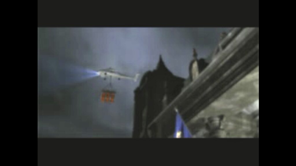裏編を少しだけ進めていくとムービーが入り、何か資材をぶら下げたヘリコプターが警察署に向かって飛んでくる、、、。