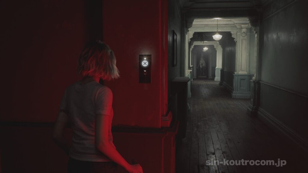 物語の序盤でグレースは怪我を負っているため走ることもままならず、手にしたライターの灯りだけを頼りに恐る恐る進むことになる。