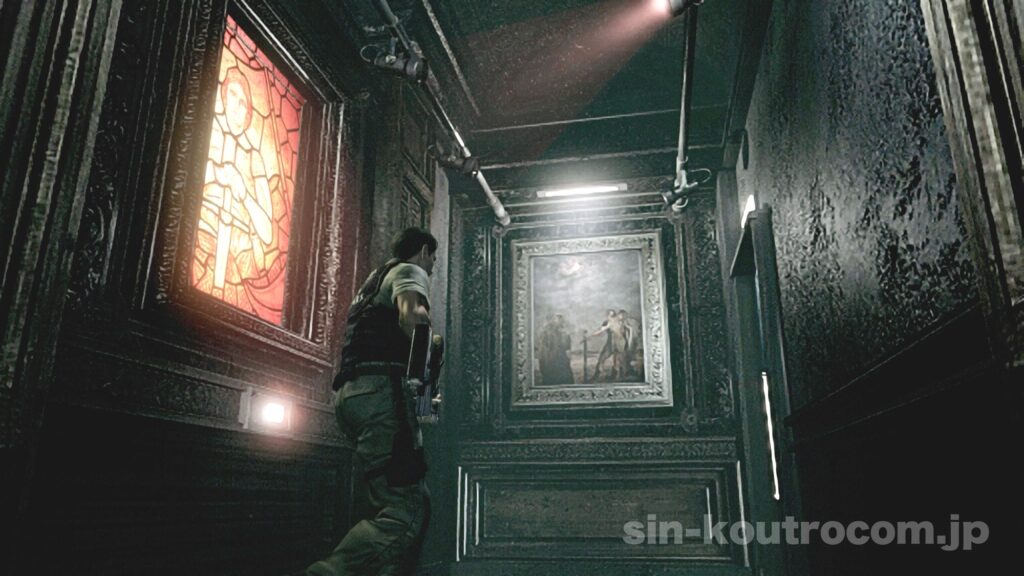 リメイク版でも同様の演出があり、アーマーキー廊下の石像トラップなど、館そのものがプレイヤーを殺そうとする仕掛けが随所に配置されている。