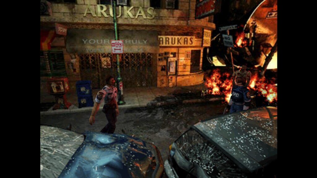 1998年9月のラクーンシティ事件を描いた『バイオハザード2』と『3 LAST ESCAPE』では、郊外の洋館に留まっていたバイオハザードが市街地へと拡大し、大量のゾンビが街を埋め尽くした。