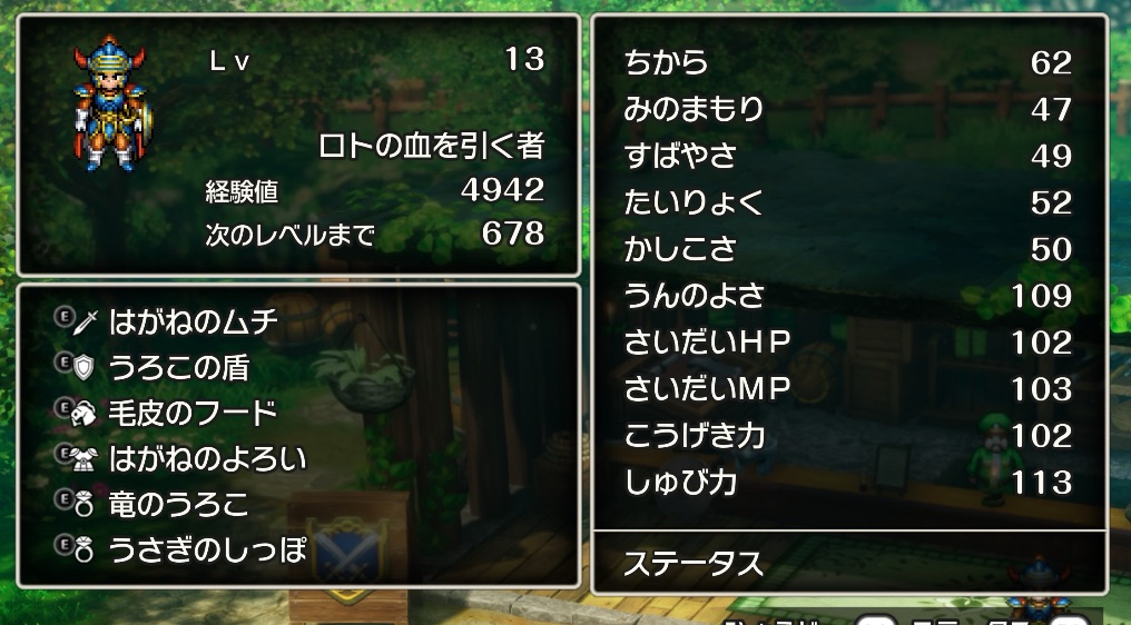 おまけに金策をしていたらLv.13にまで到達しちゃって、ドラゴン斬りとかルーラなんかも使えるようになる始末😂オリジナル版だと大体Lv.20ちょいくらいでクリアできるようになってたはずだから、結果な異常事態よwwww
