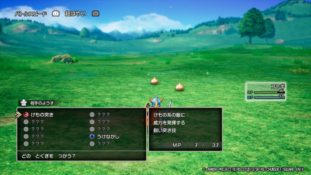 てかさ、「けもの突き」とかも使えるんだけど!😳え、これってオリジナル版では存在しなかった特技だよな?!?!