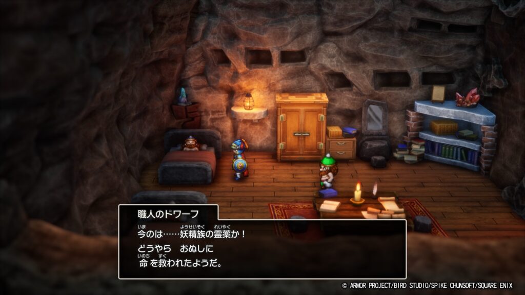 そういえば、外の部屋にいたドワーフが言ってたんだけど、ドワーフたちって元々別の大陸の世界に住んでたんだけど、妖精たちの隠れ家を作るためにアレフガルドに渡って来たらしいな!