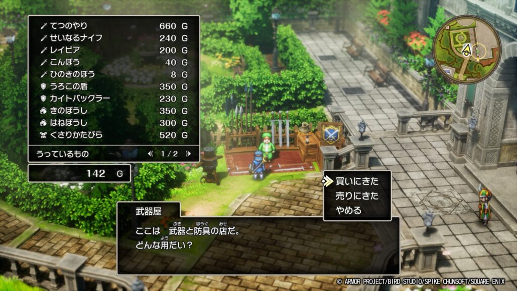 てつのやりが660Gだったり、くさりかたびらが520Gだったり、外の魔物が落とすゴールドの額に見合ってねぇ😂😂😂