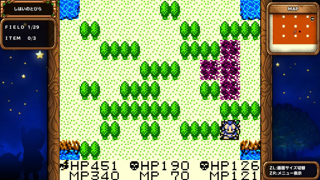 ただし序盤ではそうした便利アイテム(後述の「ぎんのたてごと」など)は未入手の場合が多いので、根気よくエンカウント→逃げるを繰り返そう。