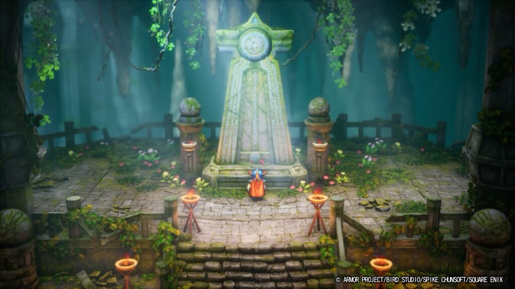勇者はこれまでに集めた「たいようのいし」「あまぐものつえ」「ロトのしるし」を携え、リムルダール南の聖なるほこらへと向かう。
