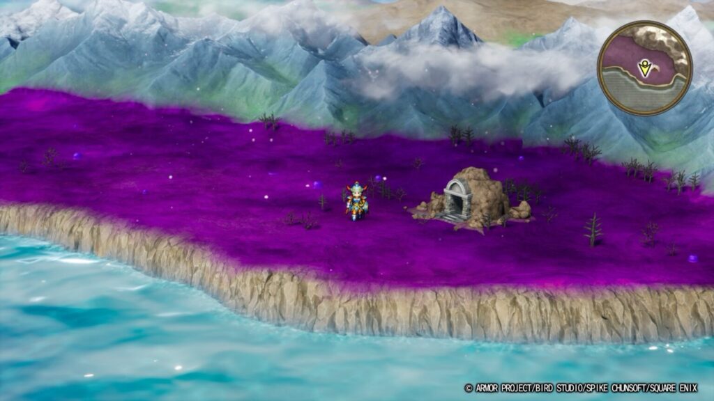 メルキドの南東、広大な毒沼の中央に、かつてロトが消息を絶ったとされる地点がある 。