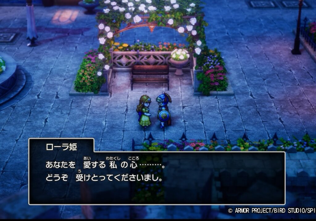 ラダトーム城へ送り届けられたローラ姫から、勇者は「おうじょのあい」を授かる。