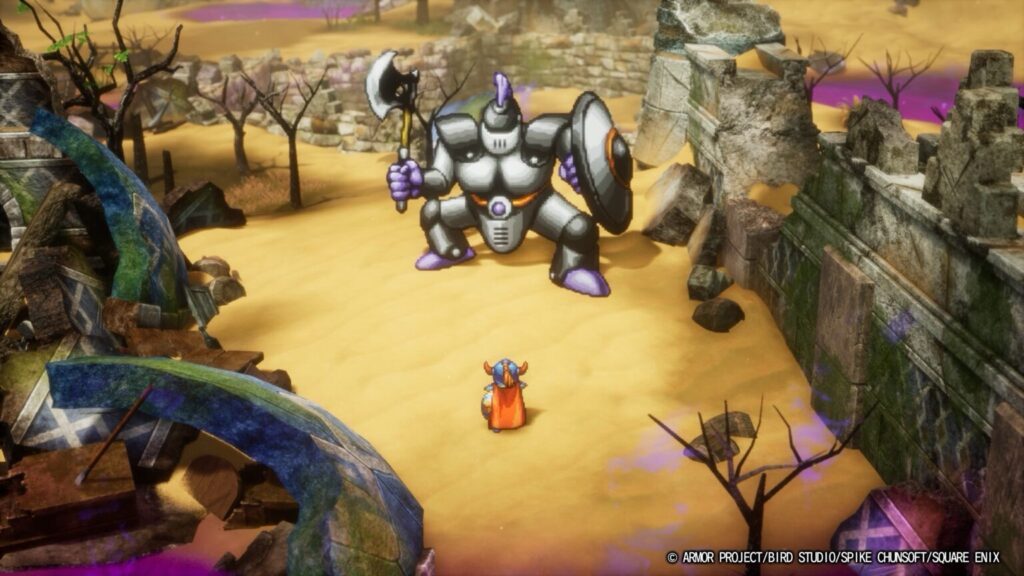 勇者の次なる目的地は、アレフガルド南西の広大な砂漠に位置する「ドムドーラ」である。かつては大陸一の商業都市として栄えたこの地は、現在、魔物の軍勢によって蹂躙され、人っ子一人いないゴーストタウンと化している。