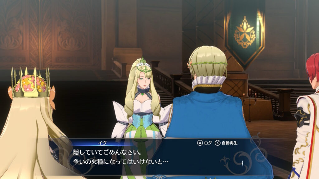 それでも仲間たちの協力と紋章士の力でついに敵将を撃破し、イルシオン軍は城から撤退していきます。リュールたちは急いで王座の間へと駆け込み、女王イヴと再会を果たす。
