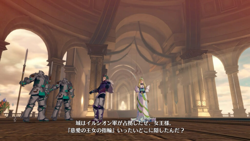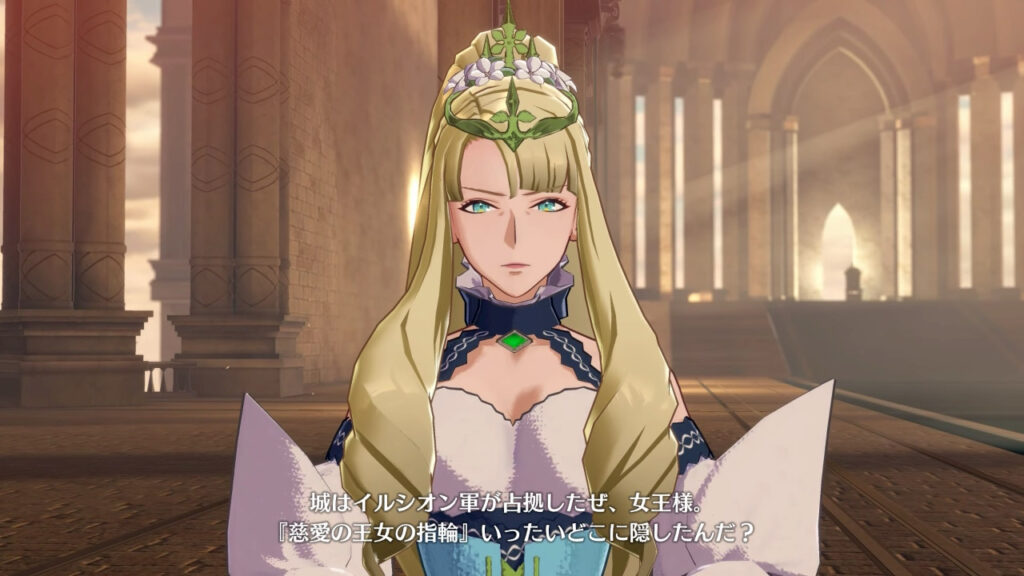 なんと先行していたイルシオン軍がフィレネ王城を急襲し、城内を占拠していた。フィレネ女王イヴは城の広間で敵将に囚われ、《慈愛の王女の指輪》(セリカの指輪)の在りかを執拗に問い詰められていた。