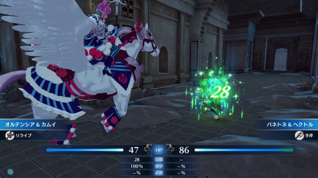 育成中にSP不足に悩みがちなエンゲージでは非常にありがたいスキル。同じく紋章士セネリオのスキル「囮指名」は、装備者が敵から狙われやすくなる効果で、意図的に特定ユニットに攻撃を集中させたい「稼ぎプレイ」で有効。(前述のブレイク要員として敵を引き付ける際などに便利)。