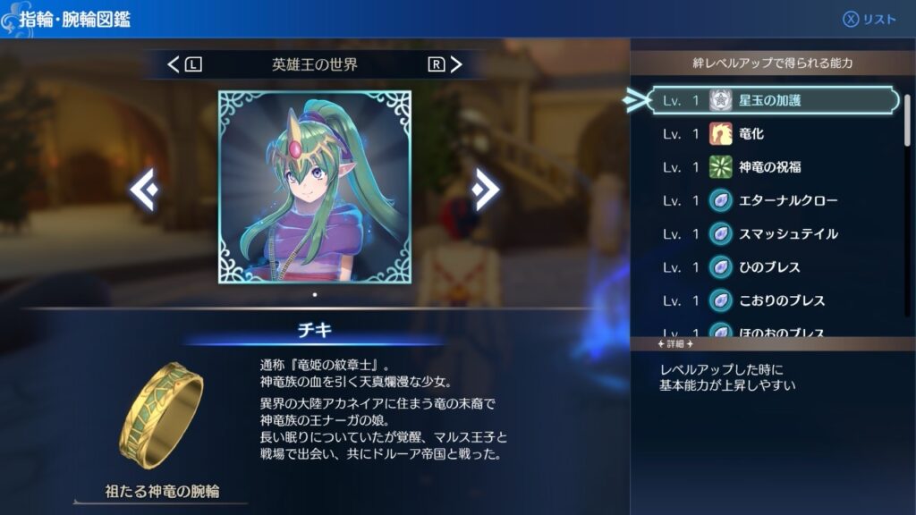 紋章士チキ(DLC)の絆Lv5で習得できるスキル「星玉の加護」は、装備者の能力成長率を底上げする(上振れ成長しやすくなる)効果がある。