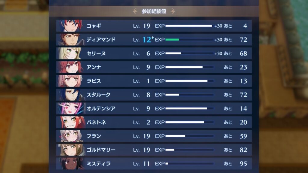 また中盤加入のシトリニカやパンドロなど魔導系ユニットも、攻撃が難しい時は杖役に回すことで安定して経験値を得られる。