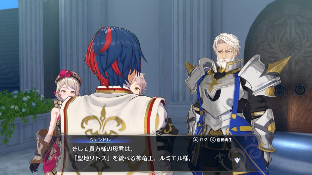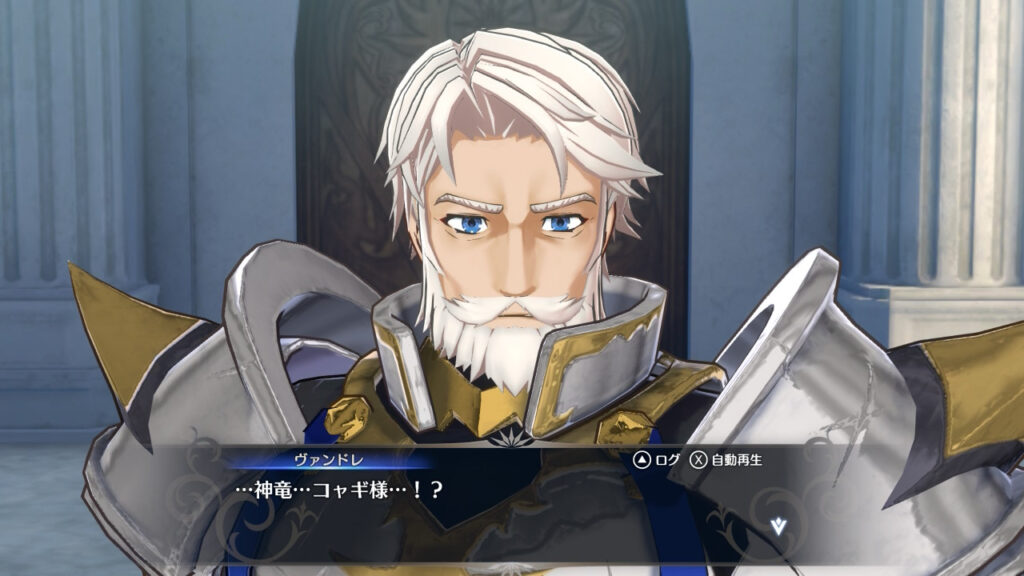 彼は目覚めたリュールに安堵しつつ、「リュール様、私はヴァンドレ。長年あなた様をお守りしてきました」と丁寧に自己紹介する。そして「神竜王ルミエル様に、あなたがお目覚めになったことを報告しに参りましょう」と提案する。