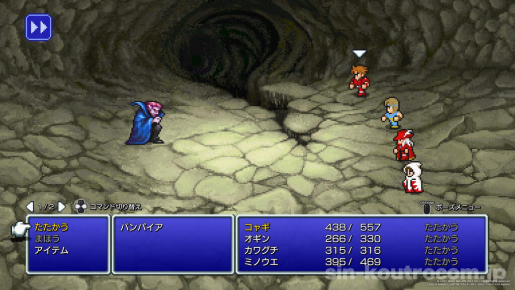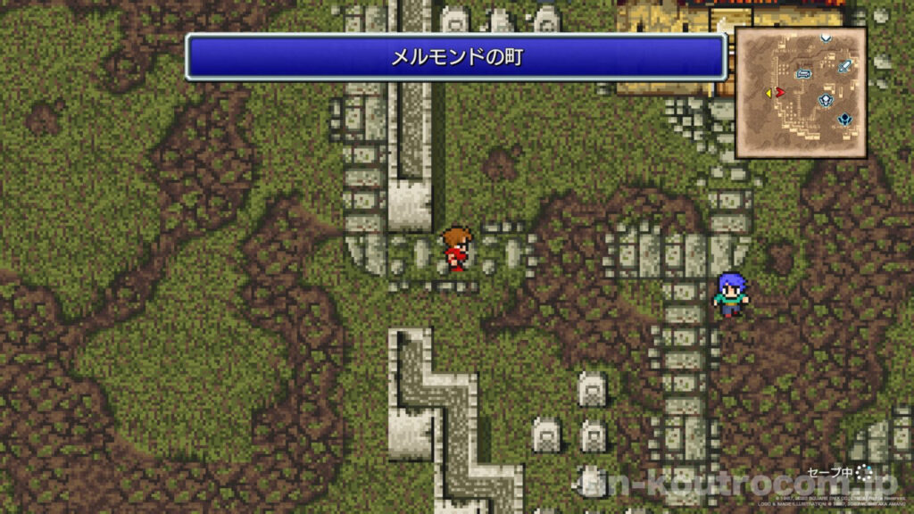 と嘆いていた。なんでも、近郊の土の洞窟から現れた吸血鬼が土のクリスタルの力を奪い、土地を枯らしているというのです。光の戦士たちはメルモンドの人々を救うため、アースの洞窟へ向かうのであった。