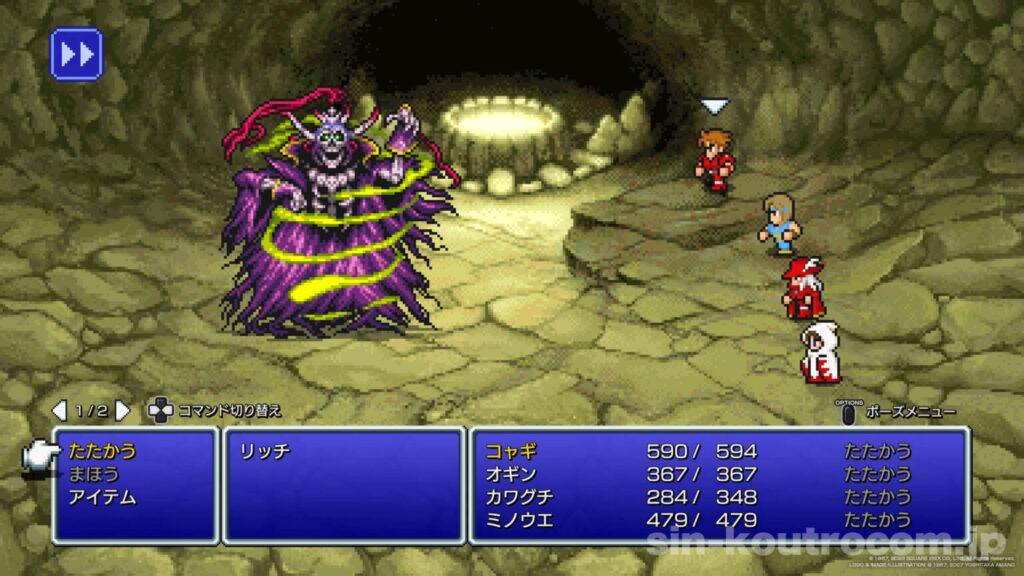 と不気味に響く声と共に、戦いが始まる。リッチは強力無比な雷や氷の呪文を次々と唱え、光の戦士たちを苦しめた。