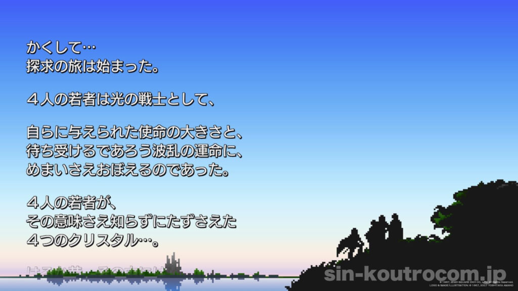 そんな光の戦士たちが最初に訪れたのは、コーネリアという王国。ここから、闇に抗い世界を救う彼らの壮大な旅路が始まるのであった。