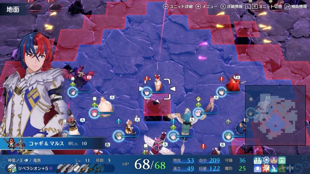 さらに戦闘中にエンゲージ(合体)コマンドを使うと、装備した紋章士と一体化し一定ターン強力な能力を発揮できる。