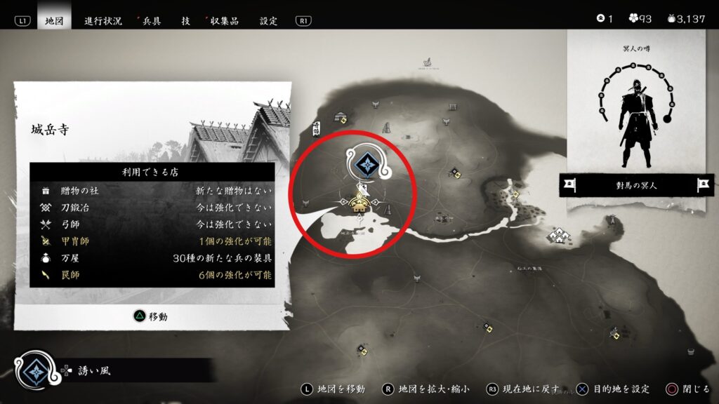- 城岳寺自体は物語後半(対馬北部)で解放されるエリアのため、第三幕開始までストーリーを進める必要がある。