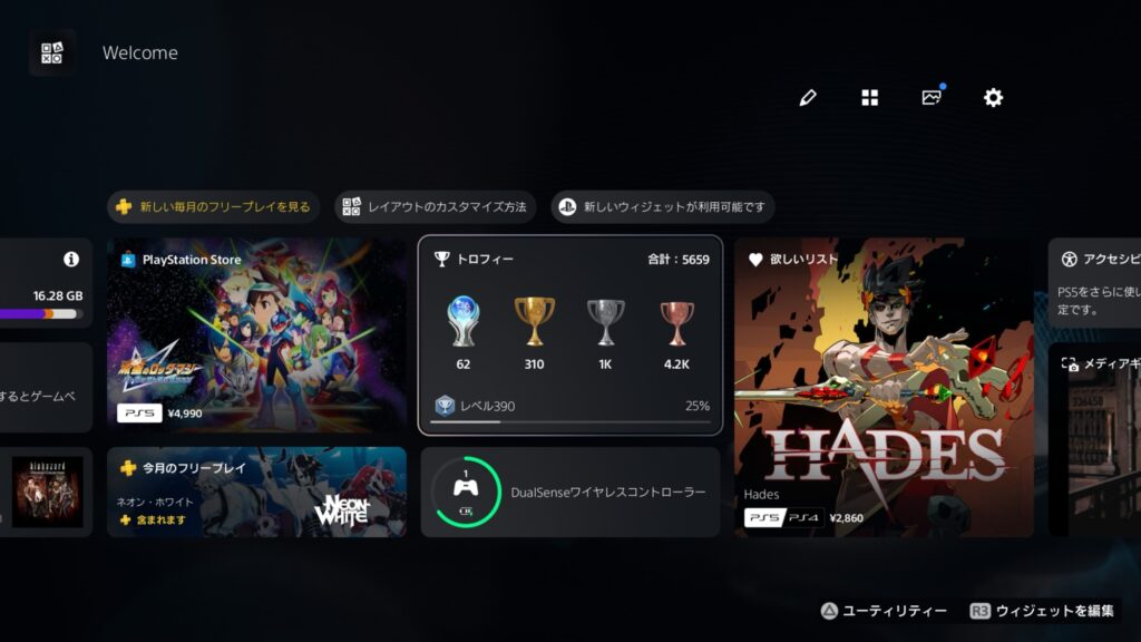 一方PS5ではUIが刷新されており、ゲーム中にコントローラーのPSボタンで呼び出せるコントロールセンター内に「トロフィーカード」が統合されている。