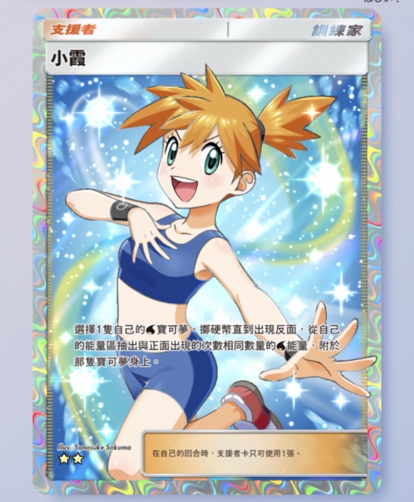 本当に信じられないくらいの余談なんだけど、最近ポケポケで「カスミ」の⭐︎2をトレードでゲットしました(笑)まさかの中国語!!