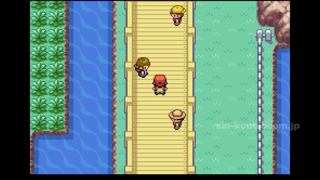 橋の西側は草むらや水路へ続き、東側は25番道路を経由してマサキの家へ行ける近道。このように、ストーリー上必ず通る場所であるため、ここでできる金策は多くのプレイヤーにとって身近なテクニックと言える。