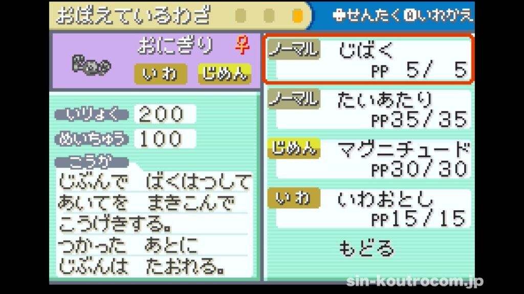 その他、1番道路などで低レベルのポッポやコラッタを捕獲しておいて使うってのも手。だが、やはりイシツブテのじばくが一番良いかな。