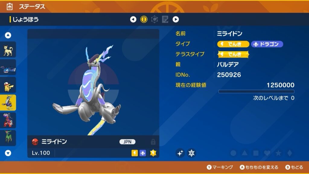 今回配布されたミライドンとコライドンのステータスは以下の通り。