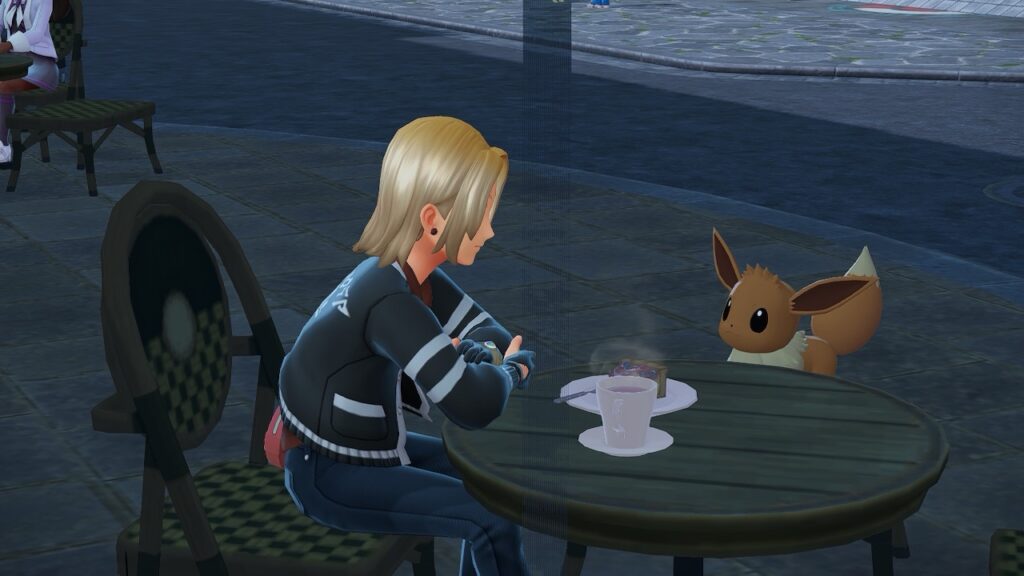 手持ちポケモンのカーソルを進化させたいポケモンに合わせて、ひたすらにカフェで過ごすのみ!!!(イーブイが恐ろしいほどに可愛い、、、)
