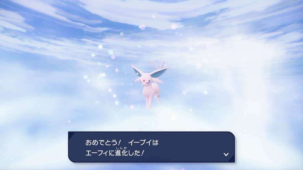 - イーブイが十分に懐いた状態かつフェアリータイプの技を覚えていると進化。