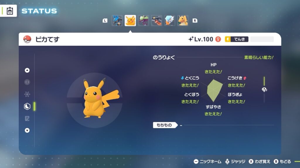 でんきだまはピカチュウの攻撃・特攻を2倍にするチートアイテムなんだけど、「ワンチャン実装されてるかも?」って思ってピカチュウを50匹くらい乱獲したんだけど、持ってなかったんよな。