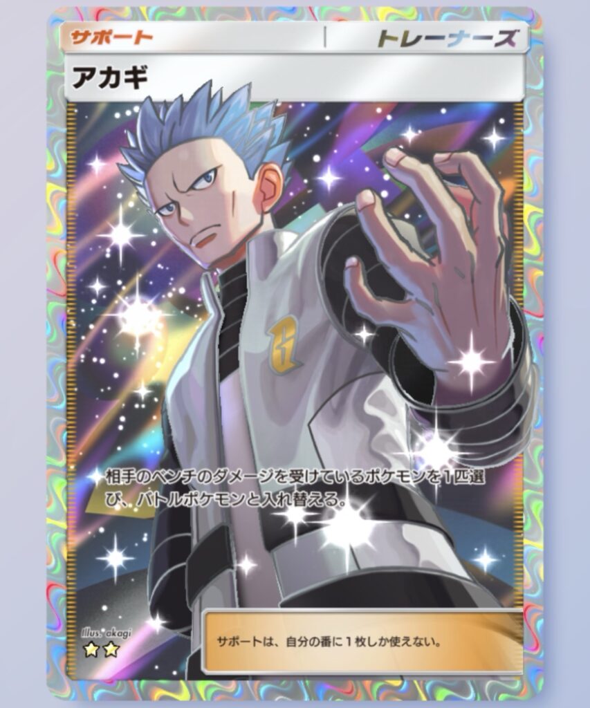 ポケモンカードゲーム ポケット(ポケポケ)における強力なサポートカードの一つが「アカギ」である。