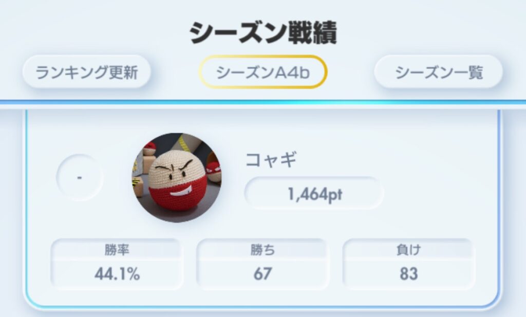 ちなみに今回は負け越しながらのマスター到達というなんとも歯がゆい結果に、、、🥹