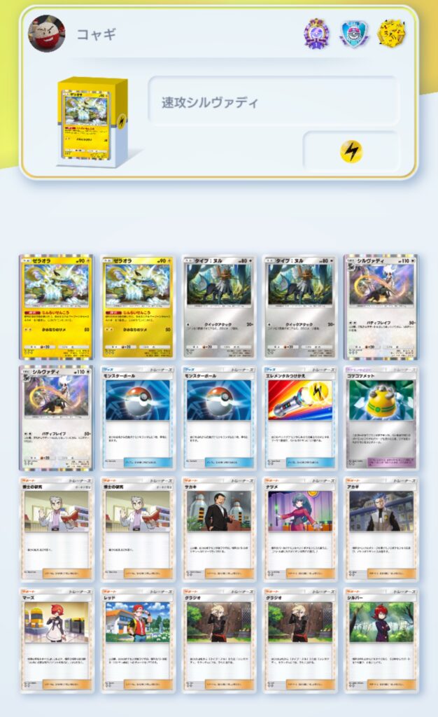 そして、もう一つはシルヴァディとゼラオラの2匹を軸にしたデッキ。今回はマジでゼラオラばっか使ってる😂笑