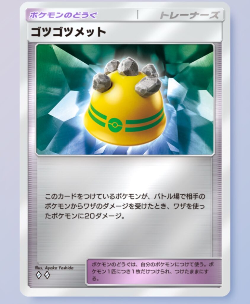 ゴツメも1枚あると結構役立つ場面が多くて、悠長に殴ってきたスイクンやギラティナをレッド込みでシルヴァディのワンパン圏内に入れたり、使い所が多いのが特徴。