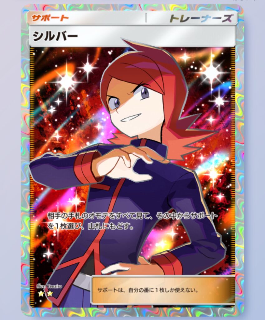 シルバーは現環境にかなり刺さるメタ的なカードで、シルヴァディとも相性が良いので採用しておくと役立つことが多い。主な使いどころは、vsスイゲコ・ダクギラで、シルヴァディで100ダメージを出す瞬間等。