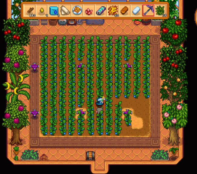 農場を本格化させるには、季節に関係なく育てられる「再収穫可能作物(植えておけば何度も収穫できる)」の導入が鍵。そのための設備が「温室」。これはマジですごい。