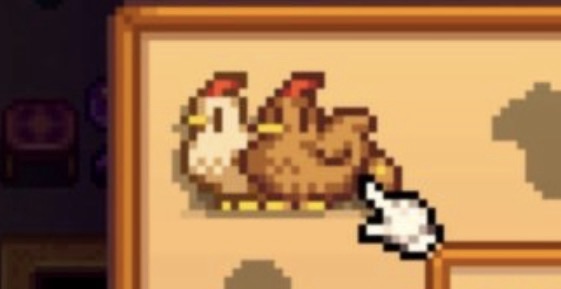 白色は白いタマゴ、茶色は茶色のタマゴを産む。どちらの生産物も売値や効果に大きな差はないが、公民館のバンドル完成には白と茶の大きなタマゴが必要になるので、両方育てておくと便利。