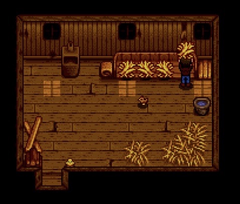 小屋の購入費は4,000gと木材300、石100で、建築には3日かかる。基本の小屋では4羽まで飼えるが、大型の小屋にアップグレードすれば最大8羽、デラックス小屋なら12羽まで収容可能になる。デラックス小屋には自動給餌システムが付き、牧草を自動で供給してくれるので大変便利。
