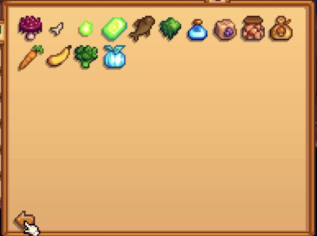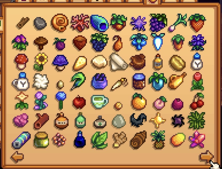 - 「満タンの出荷箱」と言っても、すべてのアイテムを出荷するわけではない。コレクションタブの「出荷」ページに載っている農産物や採取物などを1個ずつ出荷すればOK。魚、発掘品、鉱物、料理は別のコレクション扱いなので対象外。