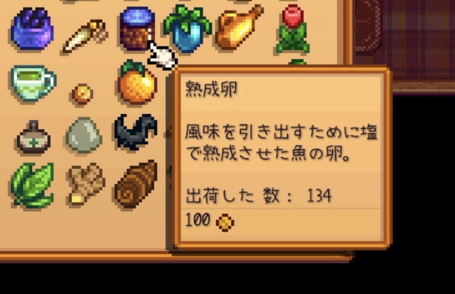 - アイテムの品質(銀星や金星など)や出荷数は実績に影響しない。1個でも出荷すればリストが埋まる。